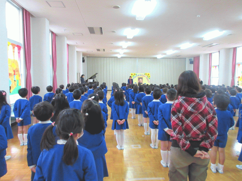 園長先生からお話を頂き、みんなで優しい気持ちでお祈りしました。