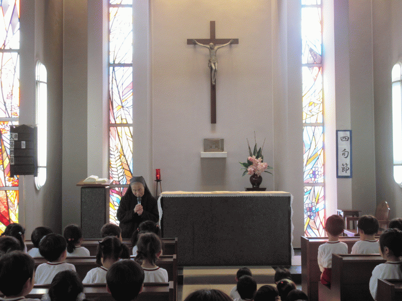 「清い心、明るい子どもになれるように、どんな時でも神様にお祈りする心を忘れず、お友達と毎日笑顔で過ごしましょう。」というお話をいただきました。