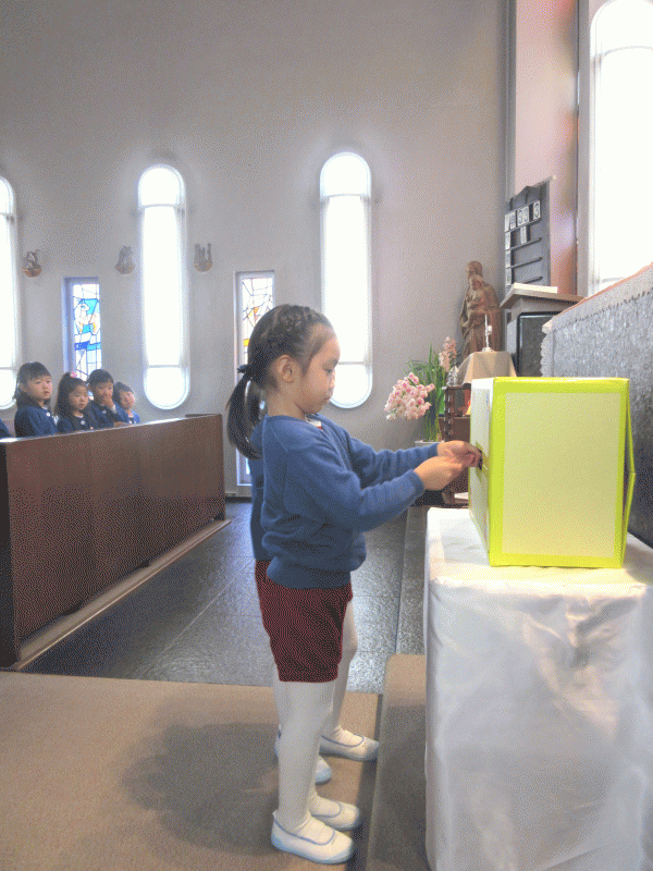 今日、年少組でも聖堂に行き、献金をお捧げしてきました。