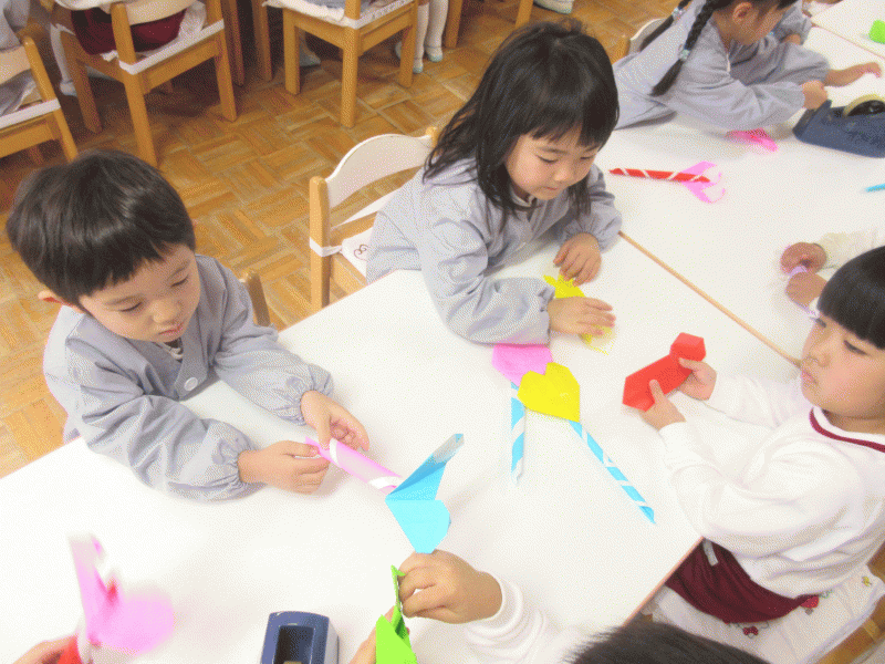 棒をくるくる巻くことが難しいようで、苦戦する様子も見られましたが、最後まで作り上げ、友達と魔法をかけあって遊んでいる姿が微笑ましかったです(>0<)♪