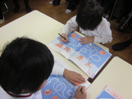 ワークでは、上手に鉛筆を持って丁寧に線を書きました(^_^)