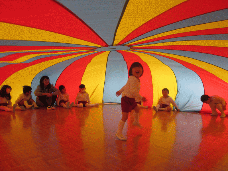 次は、メリーゴーランドを作ってくるくると回り、最後はバルーンの中に入りました。中に入った子ども達は大喜び♪