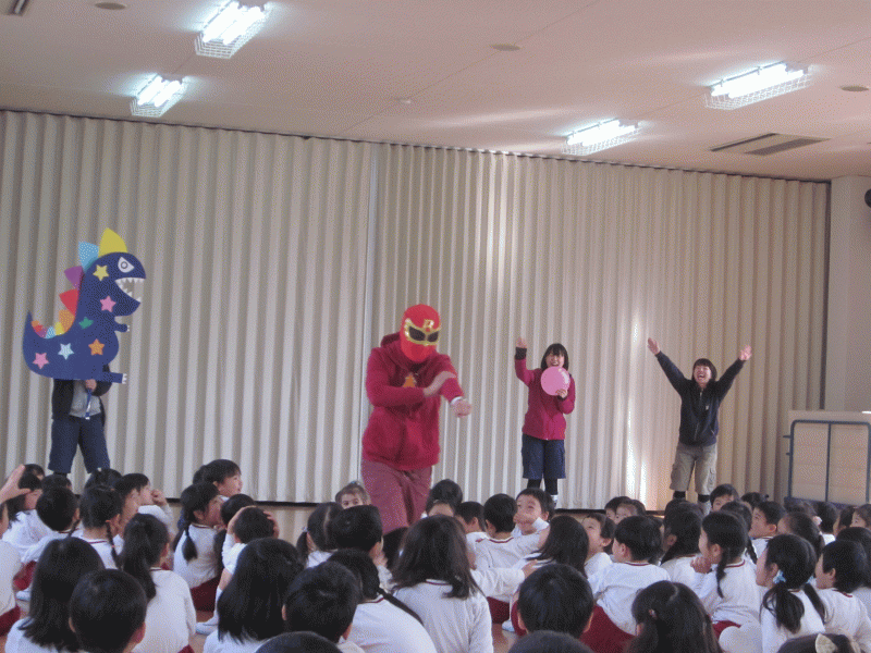 先生からのプレゼントは、寸劇「いけちゃんまん!」です☆