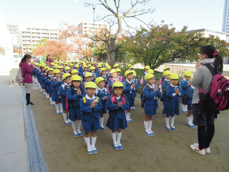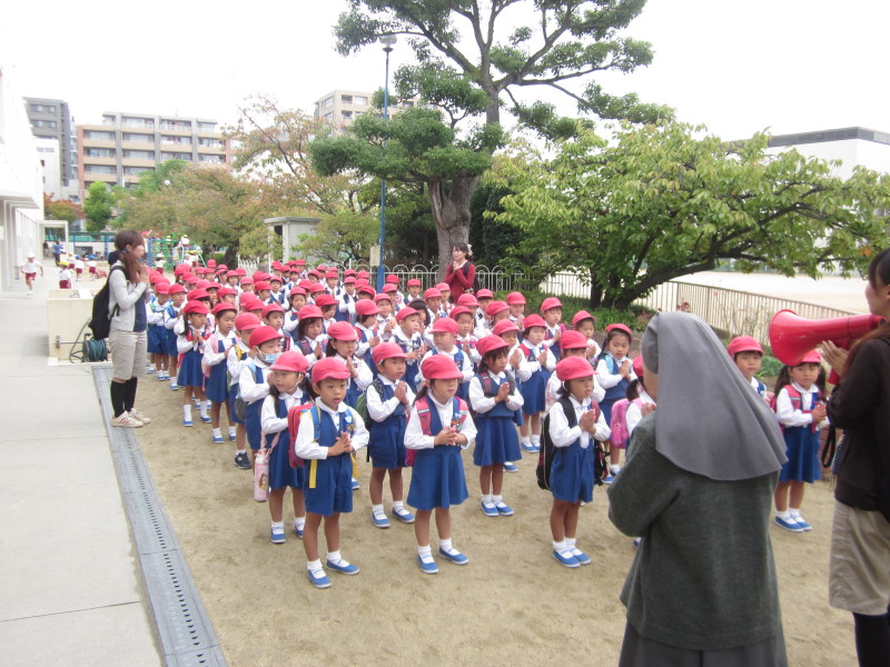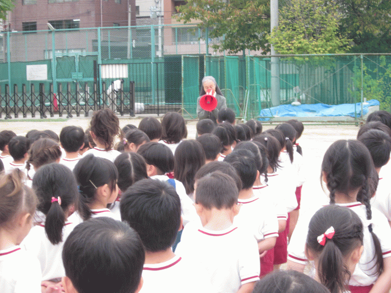 全員の無事を確認し、園長先生のお話を静かに、そしてしっかりと聞いていました(^v^)