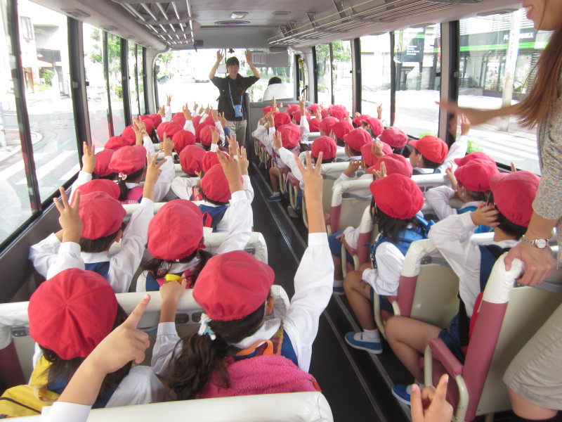 子ども達はバスに乗って出発しました♪