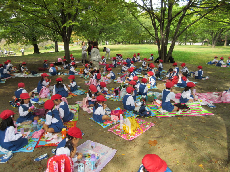 外で友達や先生と食べるお弁当は、格別の味だったようです!