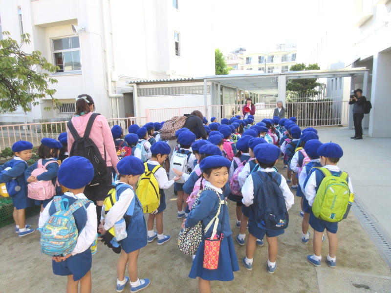「いってきまーす!!」とあいさつをして遠足に出発です☆