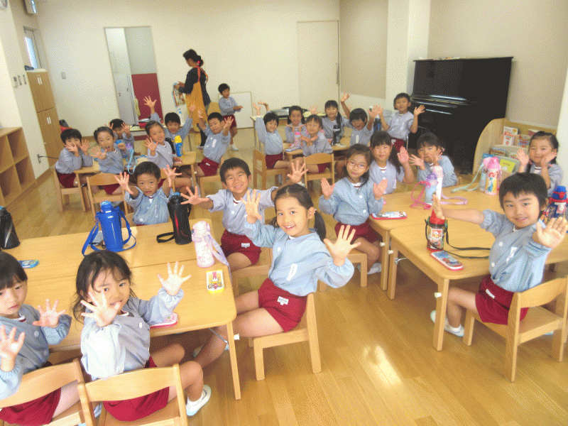 朝、神様にお祈りをしてから、園長先生に元気いっぱい