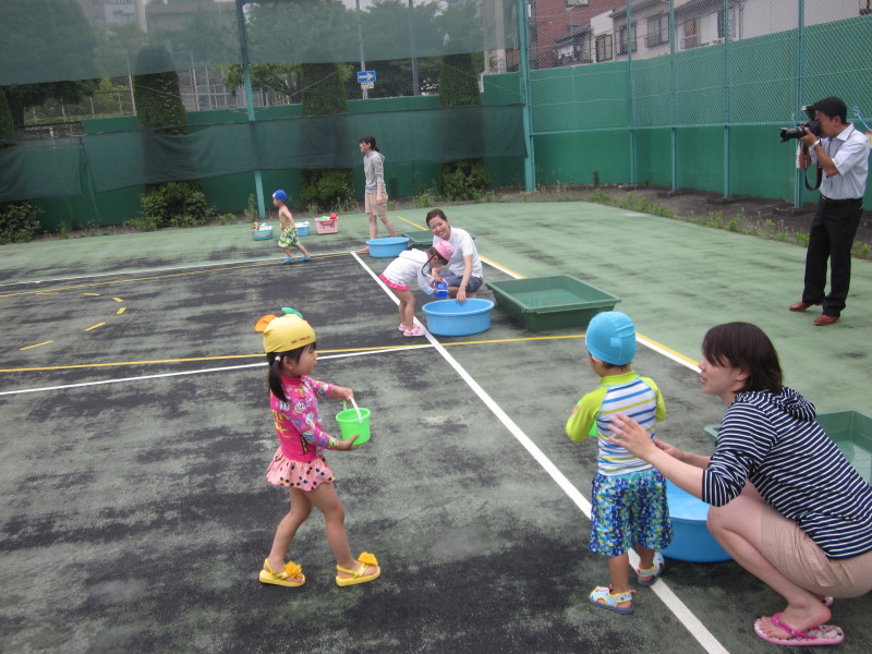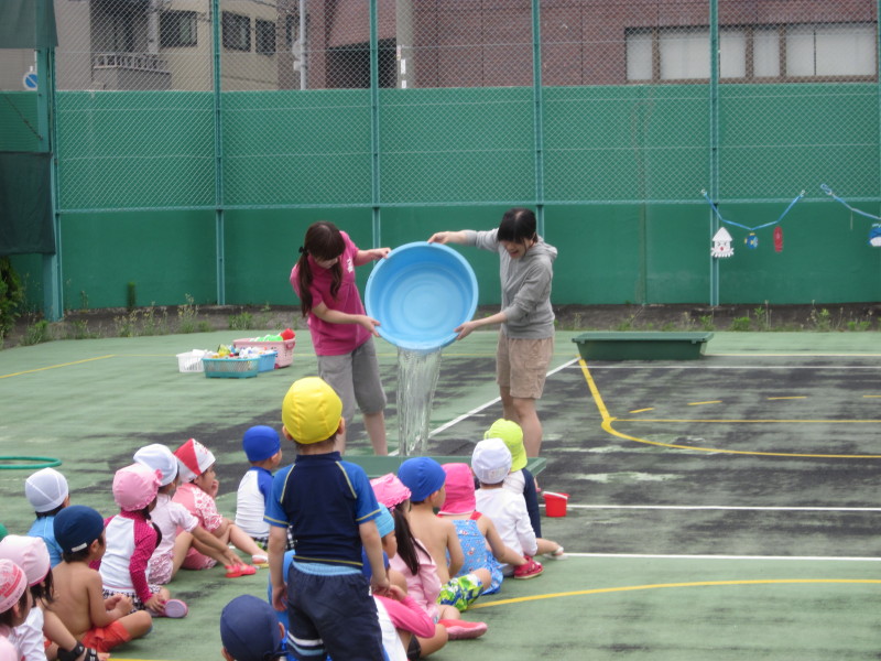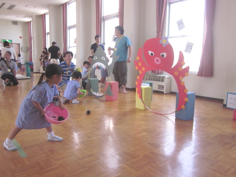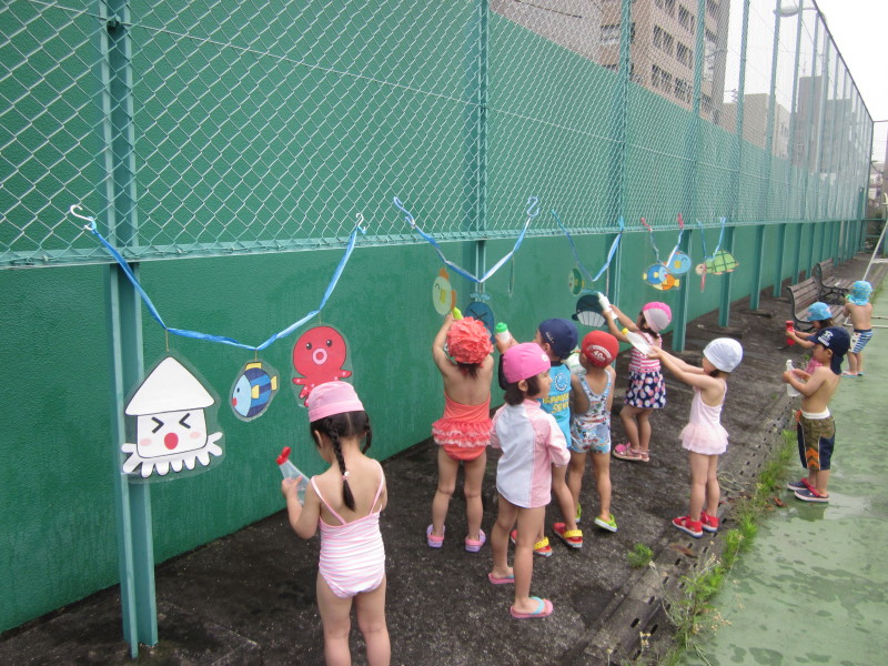他にも、金魚すくいやシャワーじょうろ、水ままごとなど、子どもたちは水に触れて楽しんでいました♪
