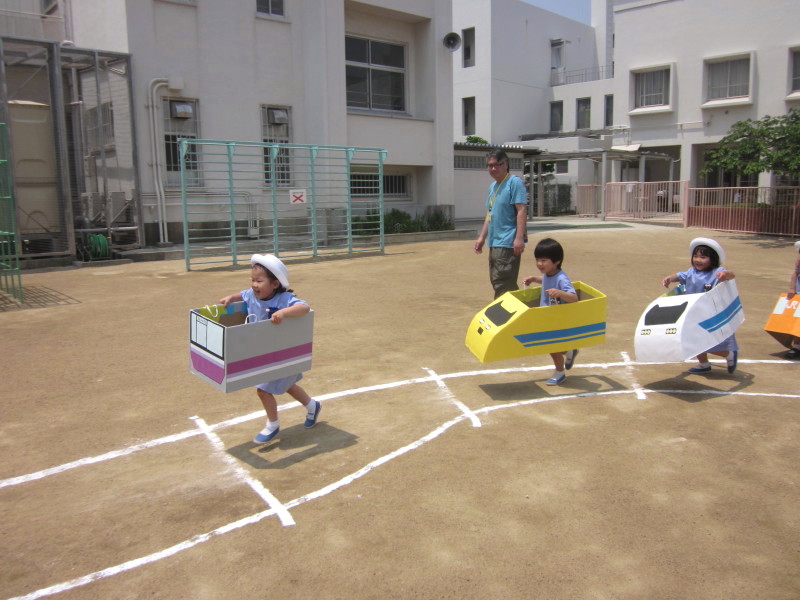 グランドでは、かけっこや電車コーナー、サッカーなど暑い中でしたが楽しく遊ぶ姿が見られました☆
