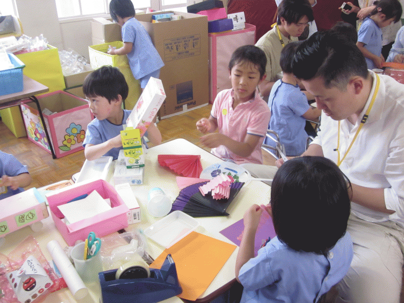 ばら・ゆり組では、空き箱や画用紙などを使って