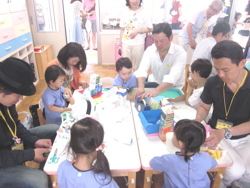 中には、子どもたちよりも真剣な表情で製作に取り組む、