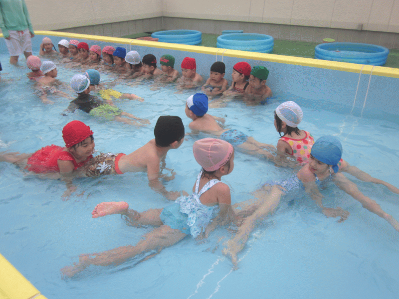 同じプールに入っているお友達と一緒に