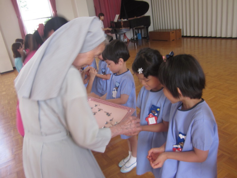 ヨハネも、園長先生からおメダイを頂いて、