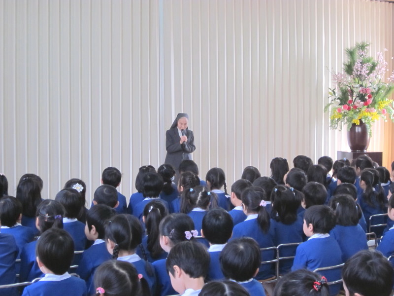 最後に、園長先生より、平成26年度の教育目標についてのお話や、今年度生誕200周年を迎えるドン・ボスコのお話、子ども・子育て新制度についてのお話しなどがあり、お母様方も耳を澄まして熱心に聞いて下さいました。