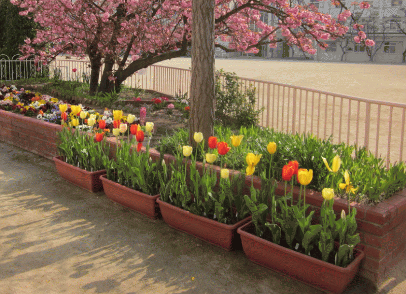 子どもたちの植えたチューリップも