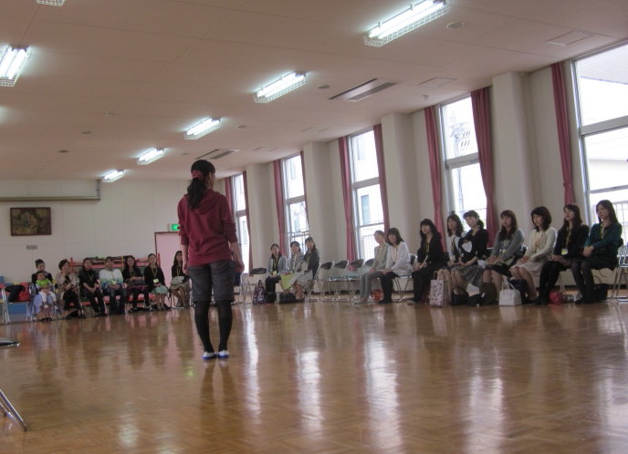 子ども達が、園生活の中で取り組んでいるリズム遊びにお母さん方が挑戦!