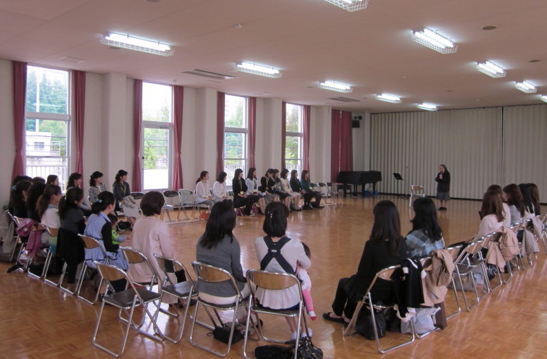 今日は、年長組のお母様方にお越しいただいて、「母の集い」が行われました。