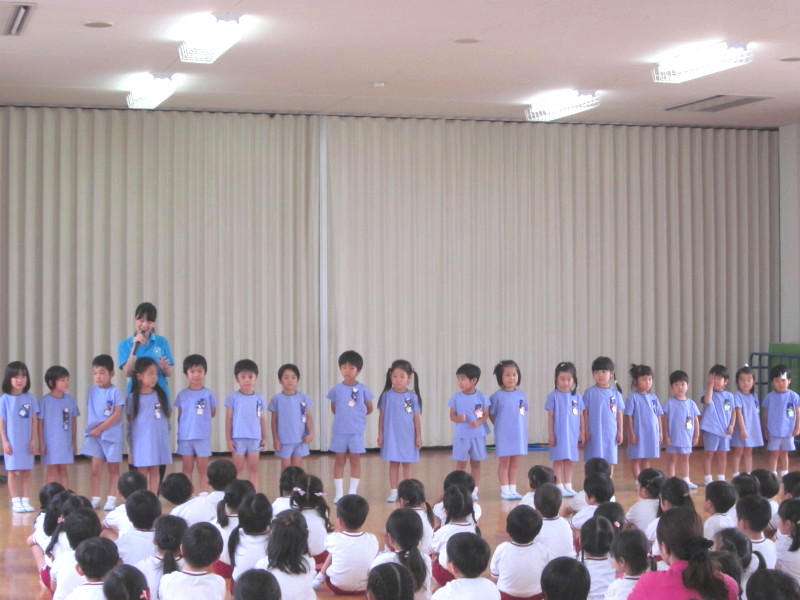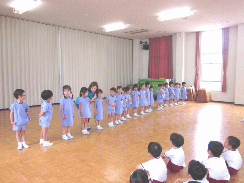 雨がたくさん降って、植物が大きく育つ6月に生まれた子ども達が前に整列しました!