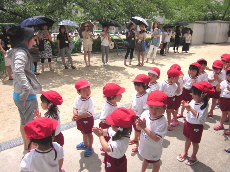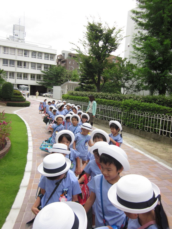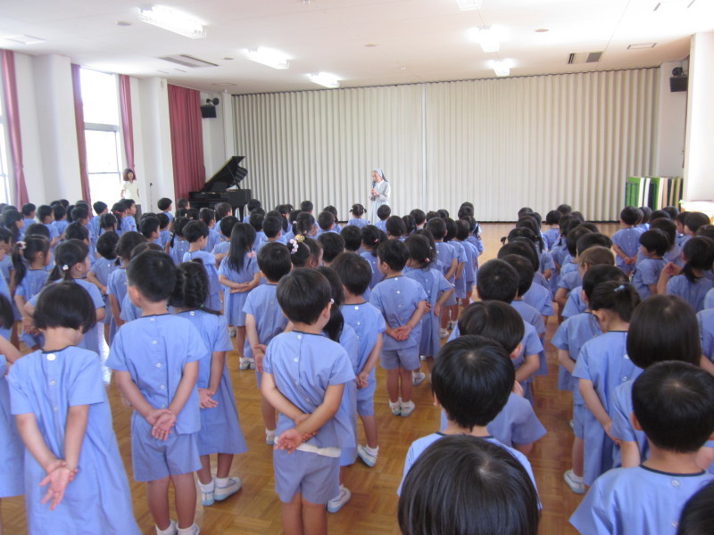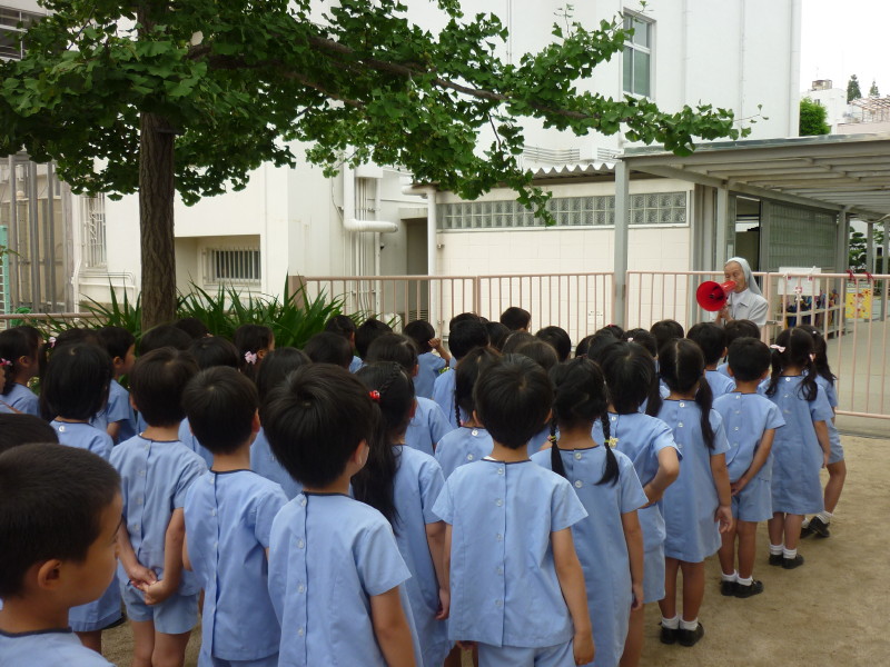 出発前に園庭でお祈りをし、園長先生からお話を頂きました。