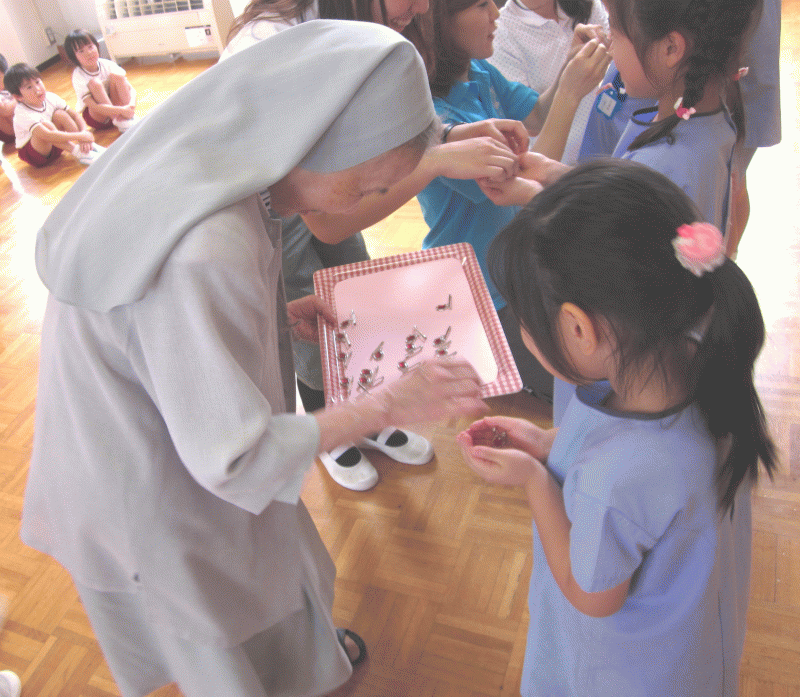 その後は、園長先生からお恵みたくさんのおメダイを頂きます♪