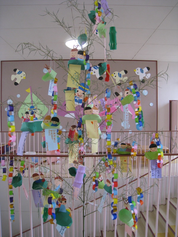 各クラスのお部屋には、子ども達が飾った笹の葉飾りがたくさん飾られました☆