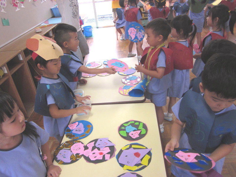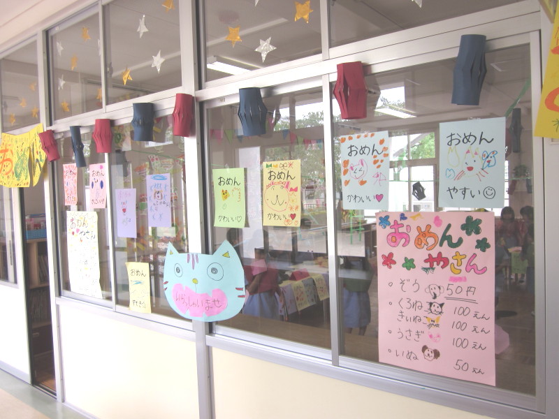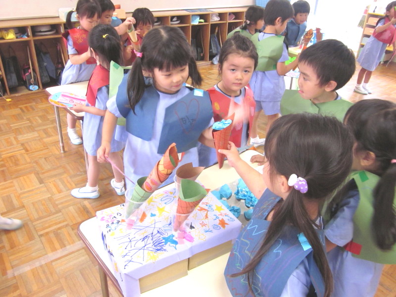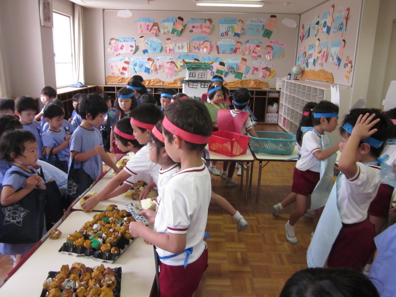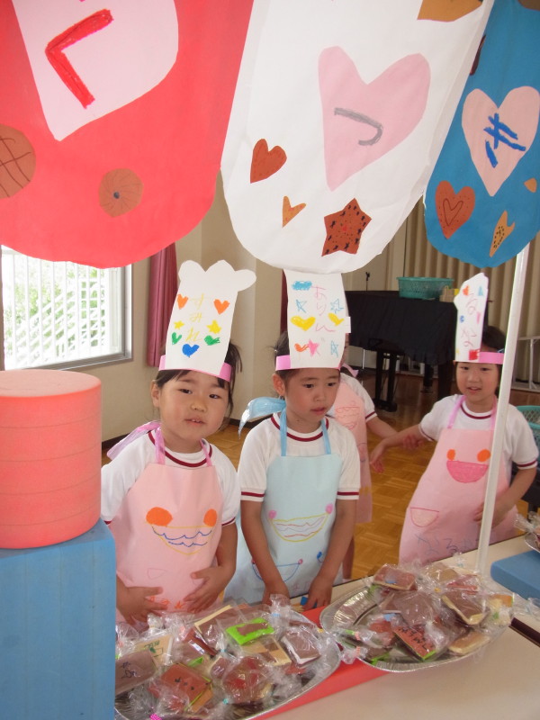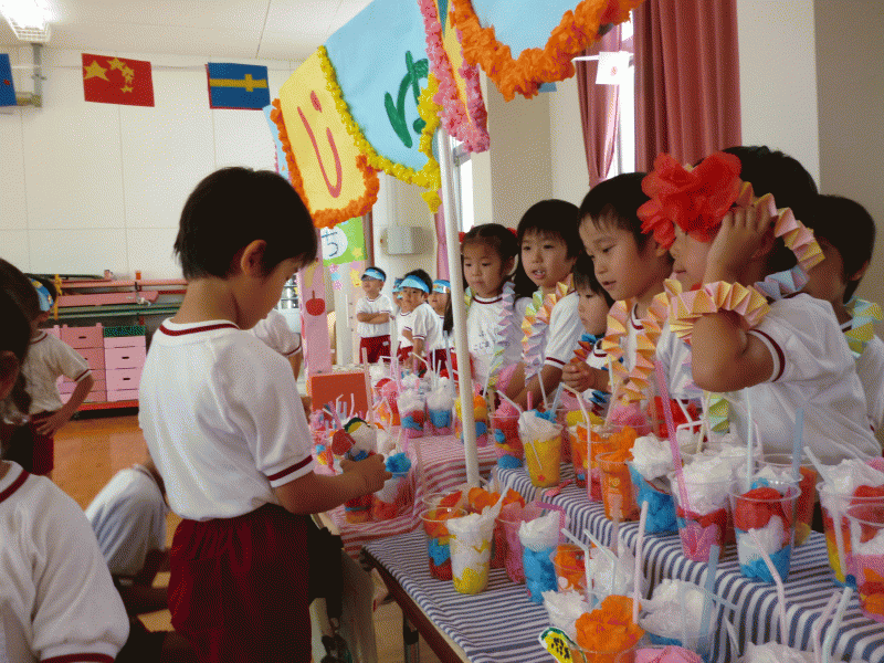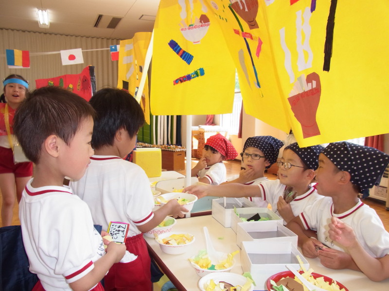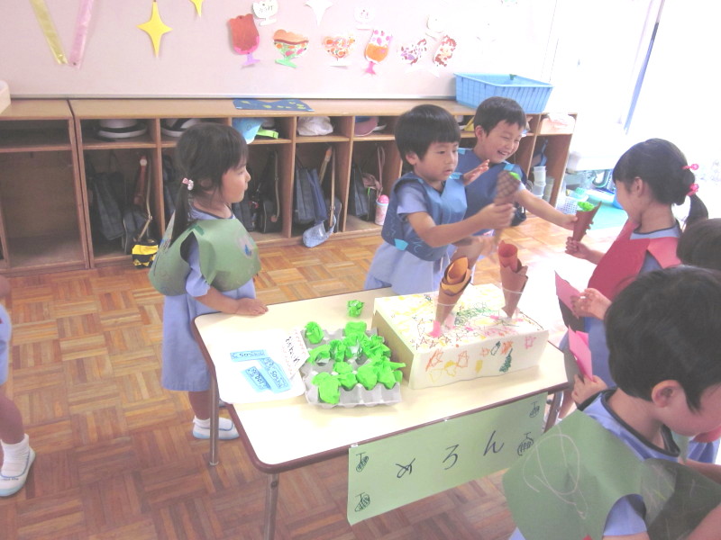 7月9日に年中組、16日に年少組を招待して、イベントごっこ“城星食博”を開催しました(^O^)♪