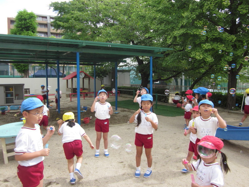 きれいなシャボン玉に子どもたちも夢中です♪