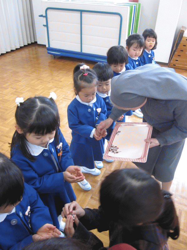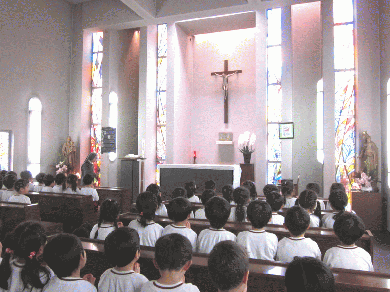 聖歌やお祈り、そして園長先生のお話もしっかりと聞いていました。