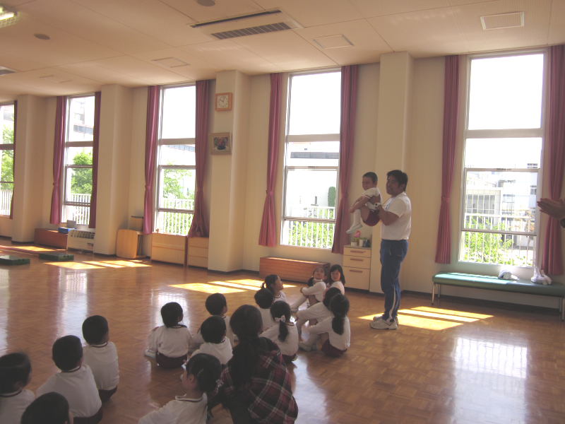 と、♪手をたたきましょう♪の歌が始まると、一緒に元気に歌う、新入園児の子どもたちの声が聞こえてきました(^^♪