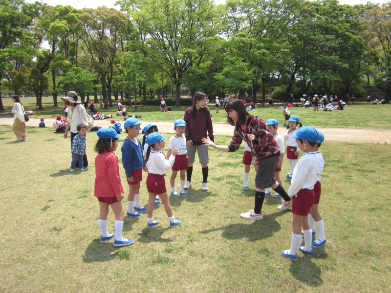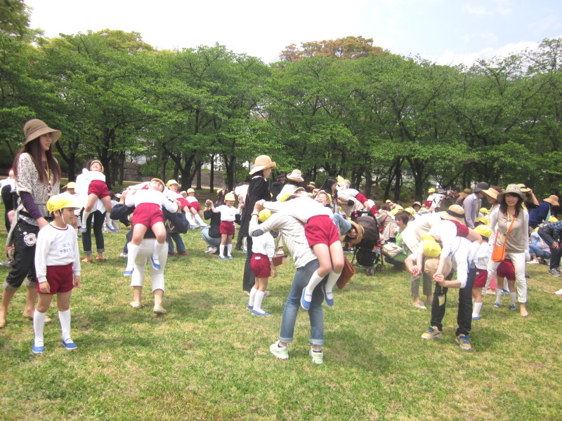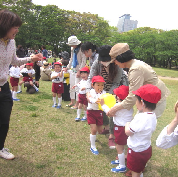 続いて、2人組になったり、4人、6人、全員・・・・・と人数が広がって歌遊びを楽しんだり、遠足でするゲームを一足先に楽しんだりして過ごしました。