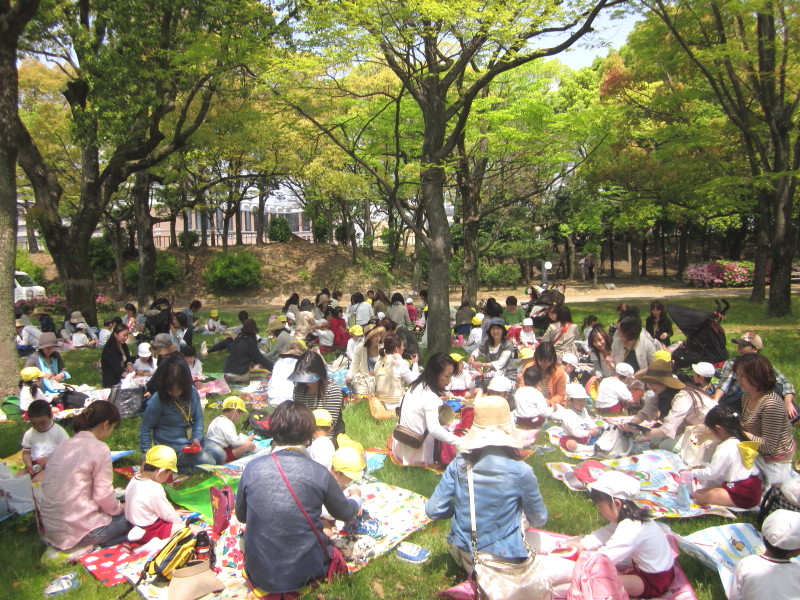 幼稚園から、大阪城の西の丸庭園まで歩いていきました。