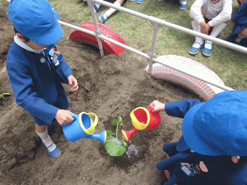ジョウロでお水をあげながら、楽しみにしている様子でした(^v^)