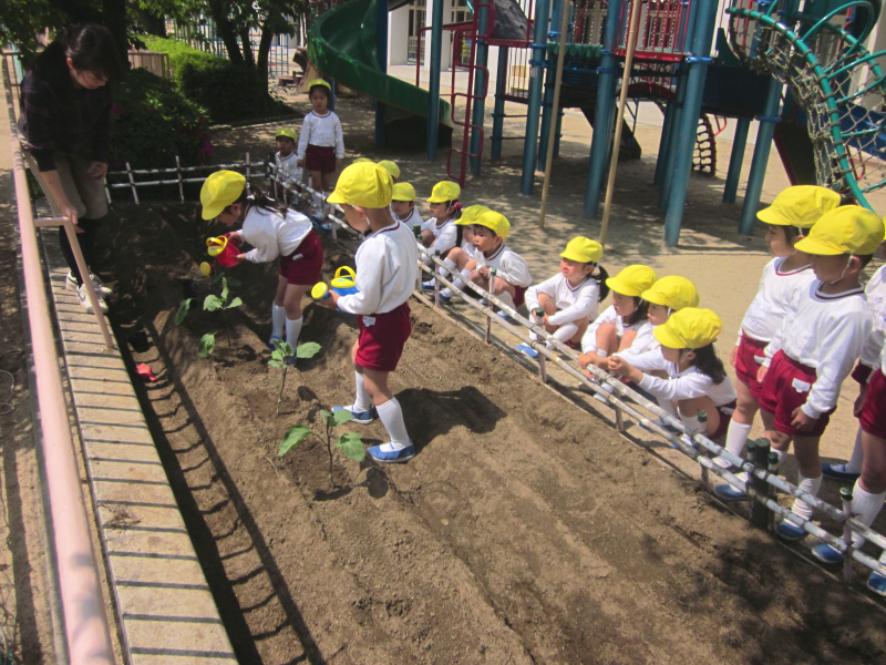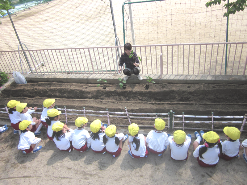 今日は、みんなで野菜の苗を植えました(*^^)v