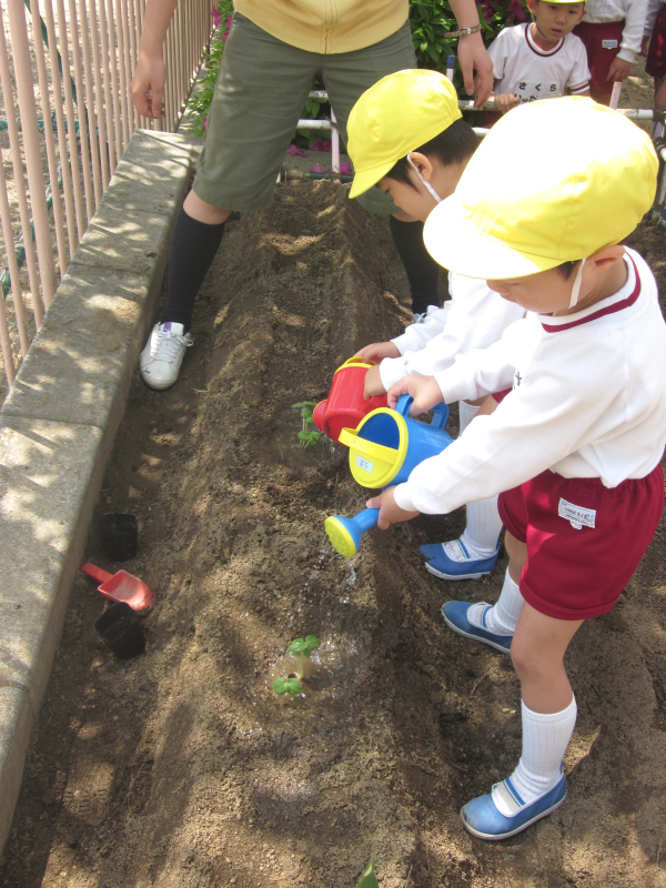 これから、毎日水やりをして、野菜が大きく育っていくことを楽しみに、子ども達と見守っていきたいと思います(^v^)
