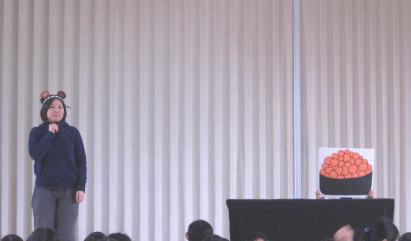 年中組は、絵本のお話を劇にして、それぞれの台詞をマイクで伝えながら