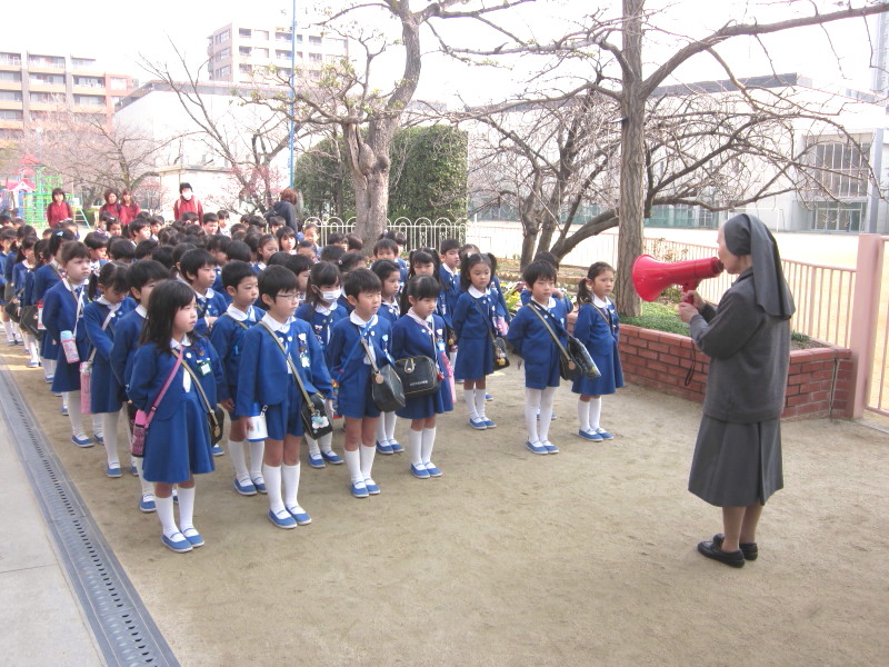 園庭で園長先生からお話を頂き、