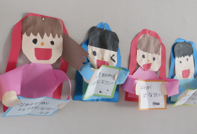 自分を作りながらも、お友達と「頑張りたいこと何にしようかな〜」「私は〇〇にする〜」と、目標を考える子ども達の姿がみられました!