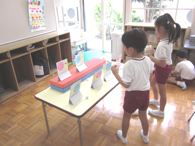 今日は投げる目標を決めて、水ふうせんで遊びました☆