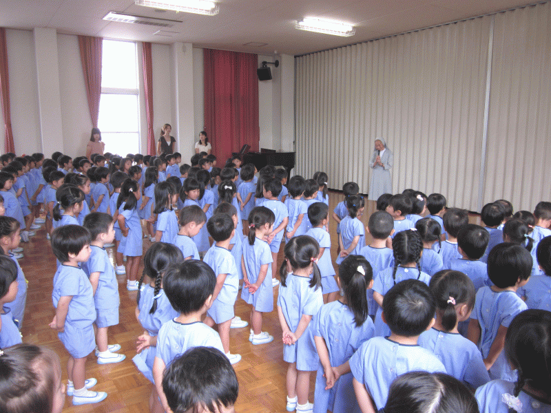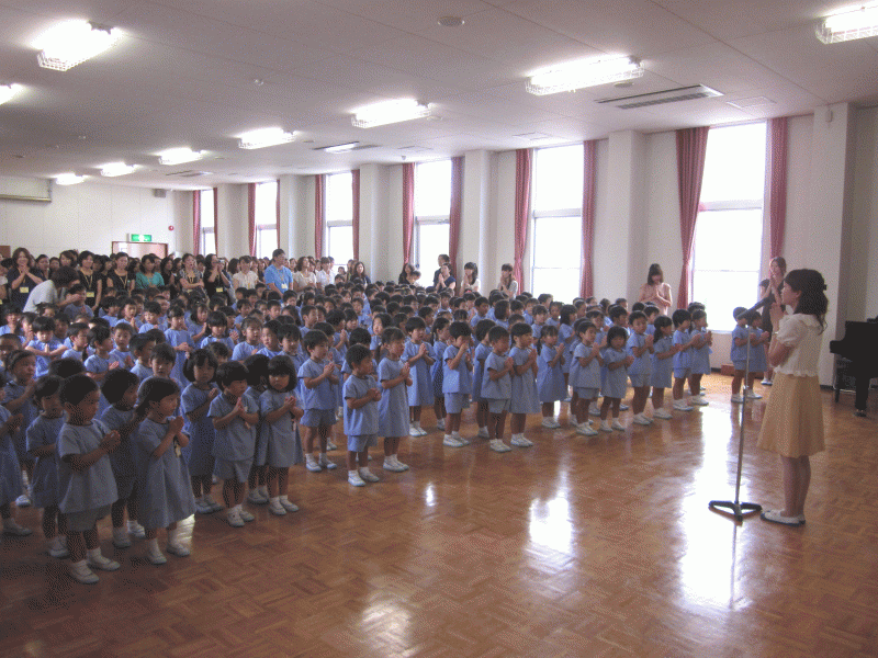 全園児が遊戯室に集まり始業式が始まりました。