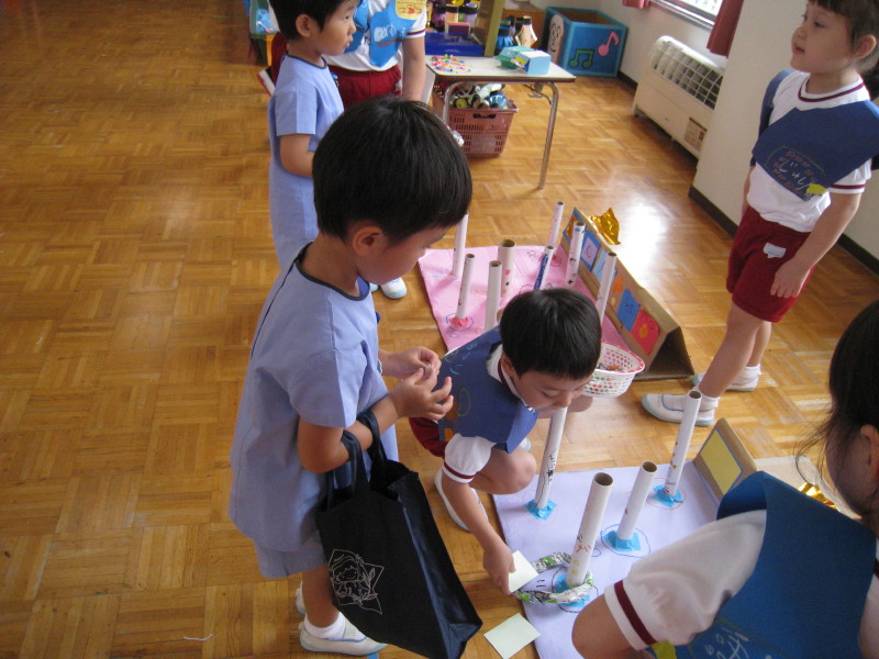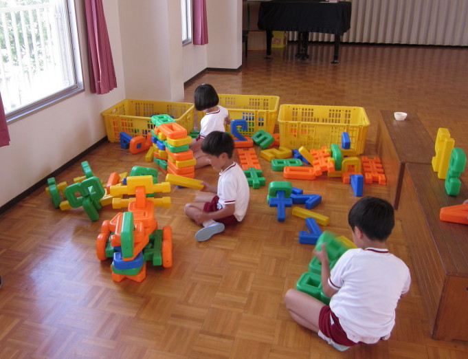 いろいろ組み合わせて、乗り物を作ったりして遊んでいました。