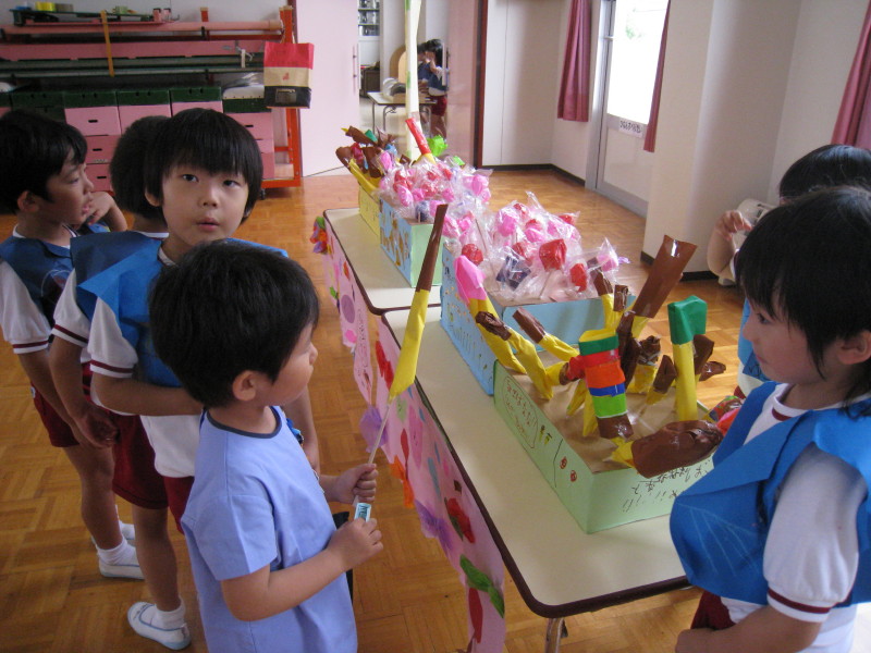 チョコバナナもりんご飴も、とっても可愛く出来ていて、年少さんもたくさん買いにきていました。