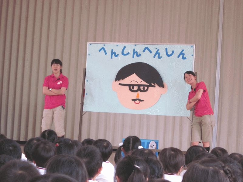歌に合わせて、へんしんくんが宇宙人やライオン、