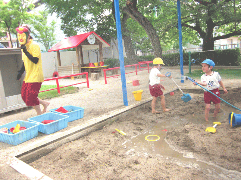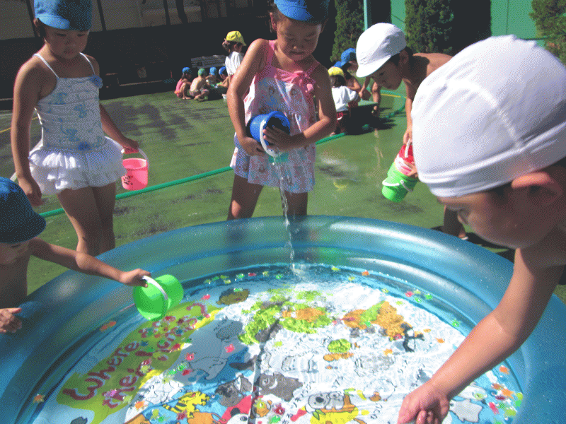 様々な遊びに取り組み、思う存分水に触れて遊びました(*^_^*)