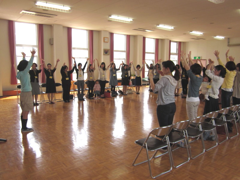 親睦ゲームの後は、園長先生から「平成24年度の教育目標」についてのお話がありました。また、園長先生がクラス担任をされていた時のお話や、金子みすずさんの詩の紹介をしながら、子どもについて、友達づくりについて、そして“母の愛”についてのお話もありました。