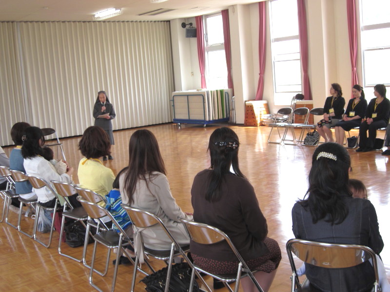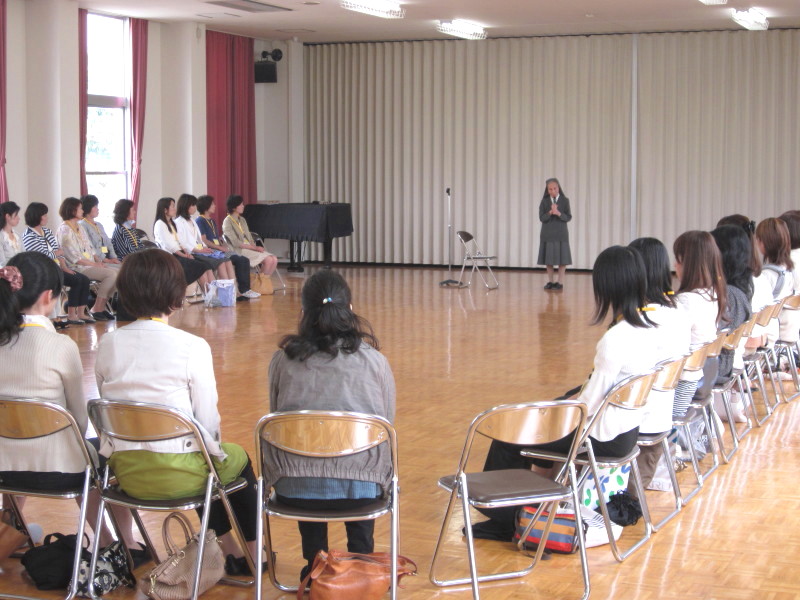 親睦の時間の後は、園長先生より「平成24年度の教育目標」についてのお話と、聖母マリア様についてのお話がありました。