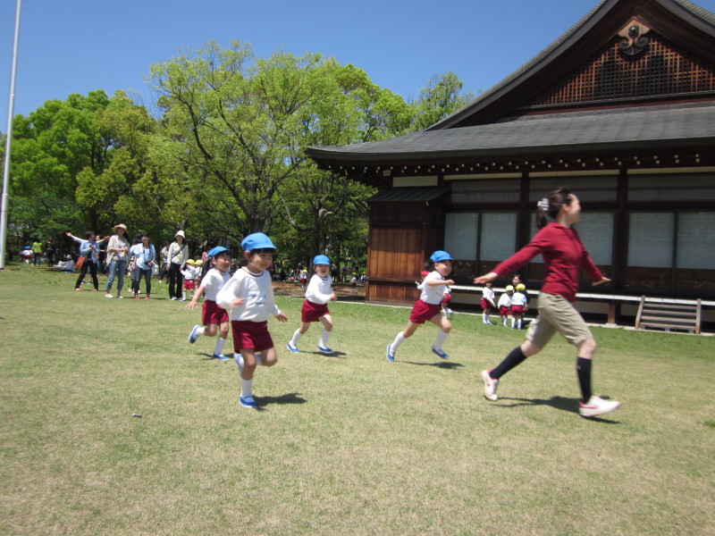 おにごっこをして、広い芝生の上を走ったり・・・