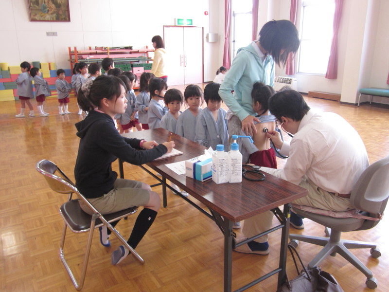幼稚園で検診が始まりました♪