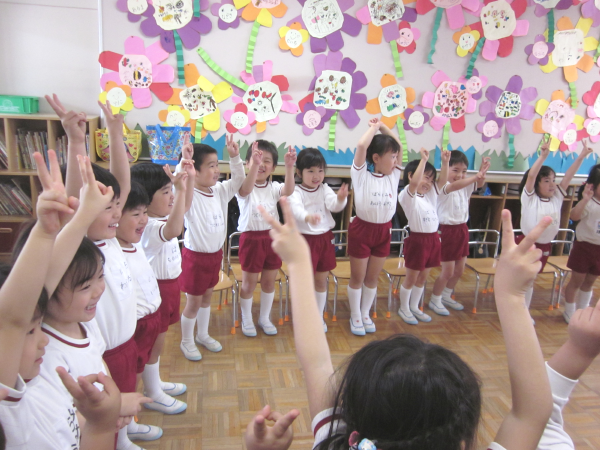 ドキドキしながら先生のまねっこ。