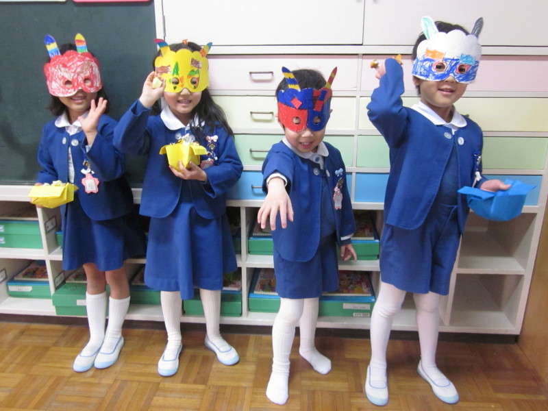 出来上がったお面をつけて、素敵なポーズを見せてくれました(*^_^*)